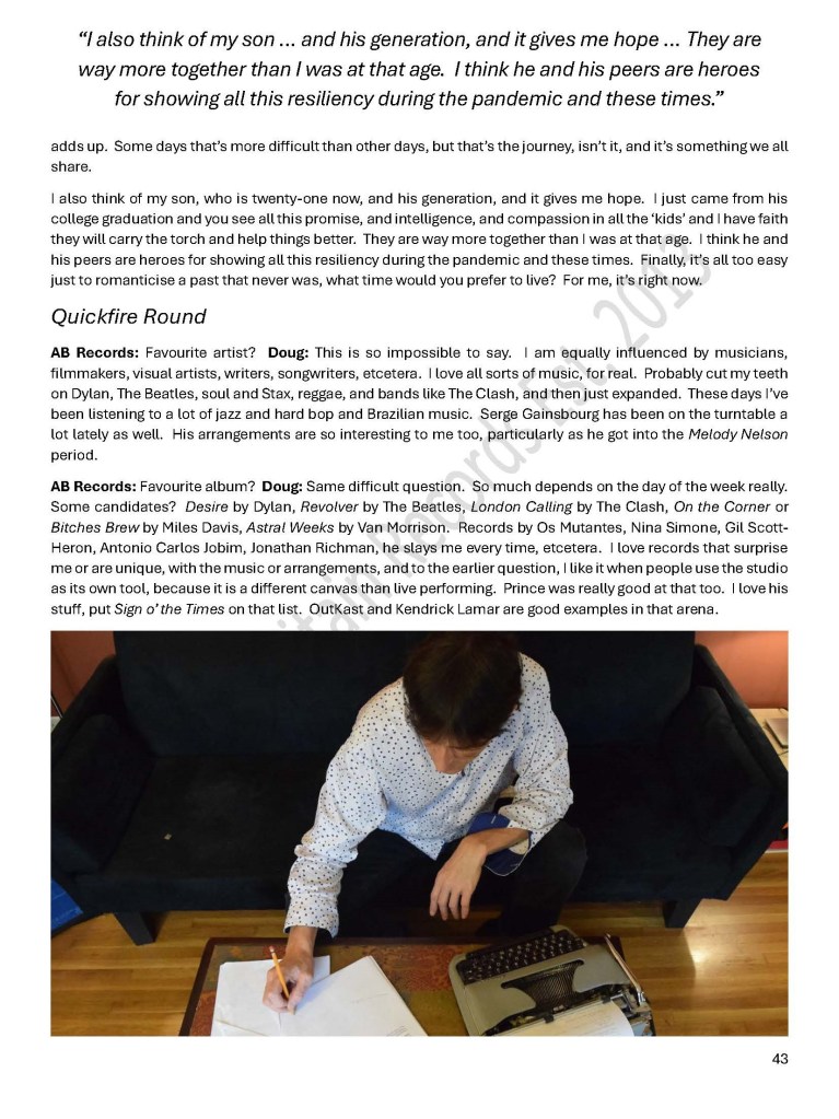 Many thanks to the fine folks at Aldora Britain Records, for featuring this interview with yours truly as part of their latest issue, #172. All kinds of fine artists are featured, but if you want to scroll to page 38, that’s where the six page Doug Hoekstra interview appears. Lots of good questions, and I hope, good answers. Intro above, link and excerpt below, and thanks again, Tom Hilton, for the listen and the support