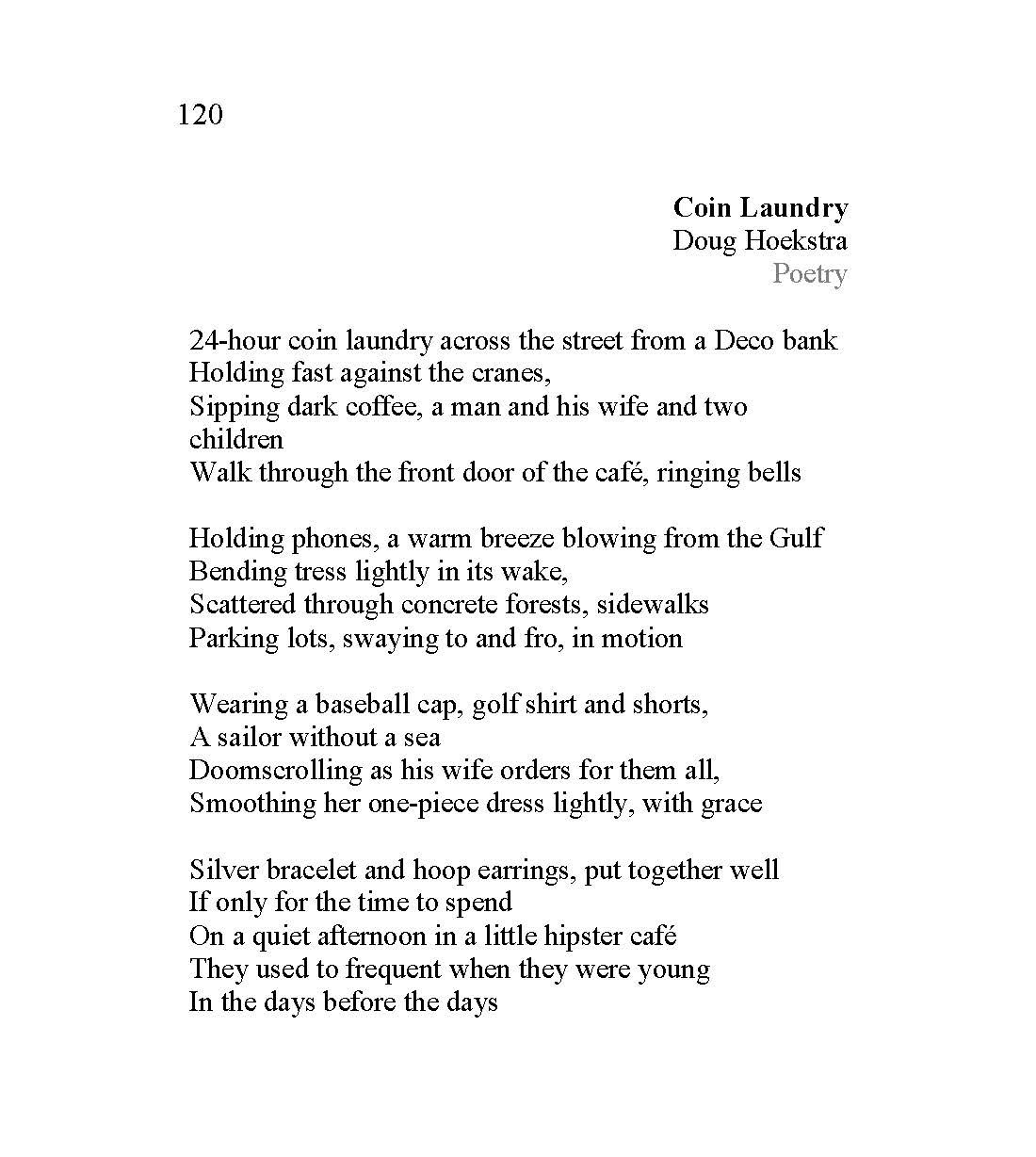 Chuffed to have three new poems of mine appear in the Issue 32 Fall 2024 edition of the excellent literary journal, Door is Ajar – “Grilled Cheese,” “Coin Laundry,” and “Sawgrass”. They are repurposed here, but pick up a print copy, if you can, support the work, and dig into all the fine writers therein, talented scribes working in prose and poetry, with depth and range. Special props also to Maxwell Bauman, the editor-in-chief, who brought us all together in this fine looking journal one can feel, touch, and thumb through, old school.