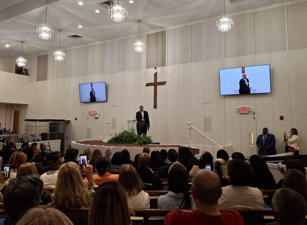 Early on, there was a question from a gentleman who was exasperated (aren’t we all) by having to constantly call Marsha Blackburn and Bill Hagerty here in Tennessee, to seemingly no avail. He asked if it really matters. The answer of course was yes, and Senator Booker passionately encouraged the man to keep at it, that he is doing something, before segueing into a story about how a volunteer putting in one extra hour each week made a significant impact on his life, as a child. These stories are everywhere, really, but they are true, one person can’t do it all, but we can all do something. So, as I sat there in the church, with all its history, I thought about those freedom fighters and the SCLC and so many, black and white, really, who put it on the line. They didn’t say, well, if we boycott these buses, it’s not really going to help anything or marching doesn’t really do anything. They just got after it. So, props to that gentleman and anyone pressing on through their doubts. Do we have a choice?