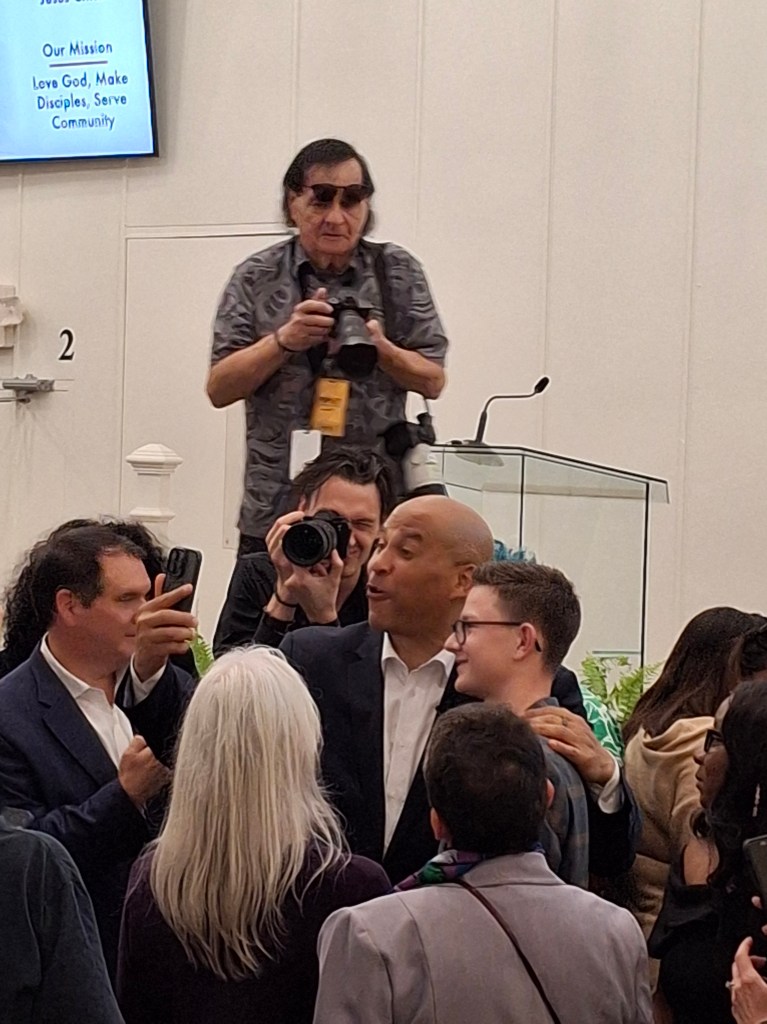 Now I get that some folks will say, oh, Booker’s just a politician out working to position himself for the next election or the open field in 2028. But, first off, it’s his job to talk to people, listen, get elected, and hopefully, be responsive. Secondly, I can say that just being there connected me to community, and made me feel more engaged and optimistic than before I walked in. Isn’t that the point? One of the things I’ve discovered, volunteering, or engaging in civil “discourse,” is that people can feel the common ground and simply wind up talking to each other, total strangers, thrown together through agency.