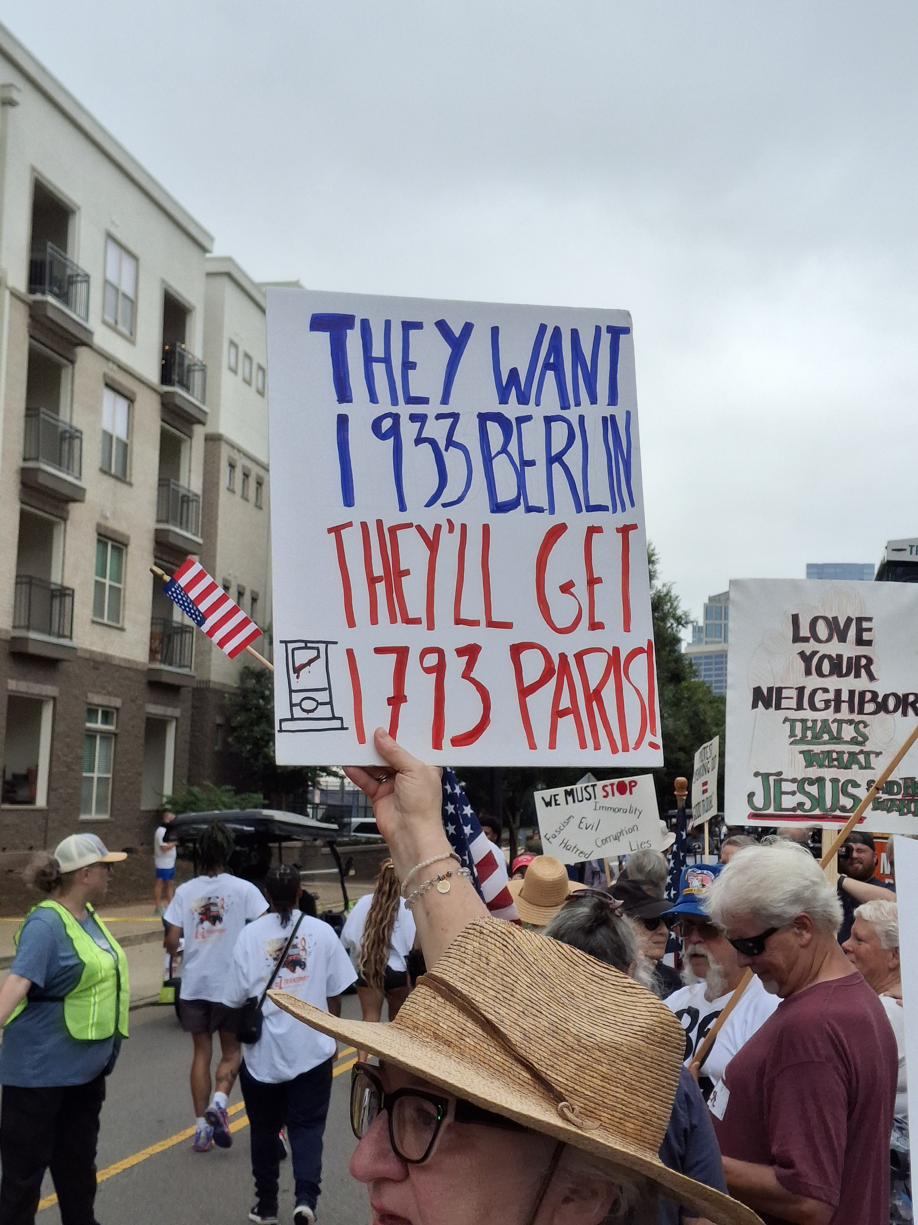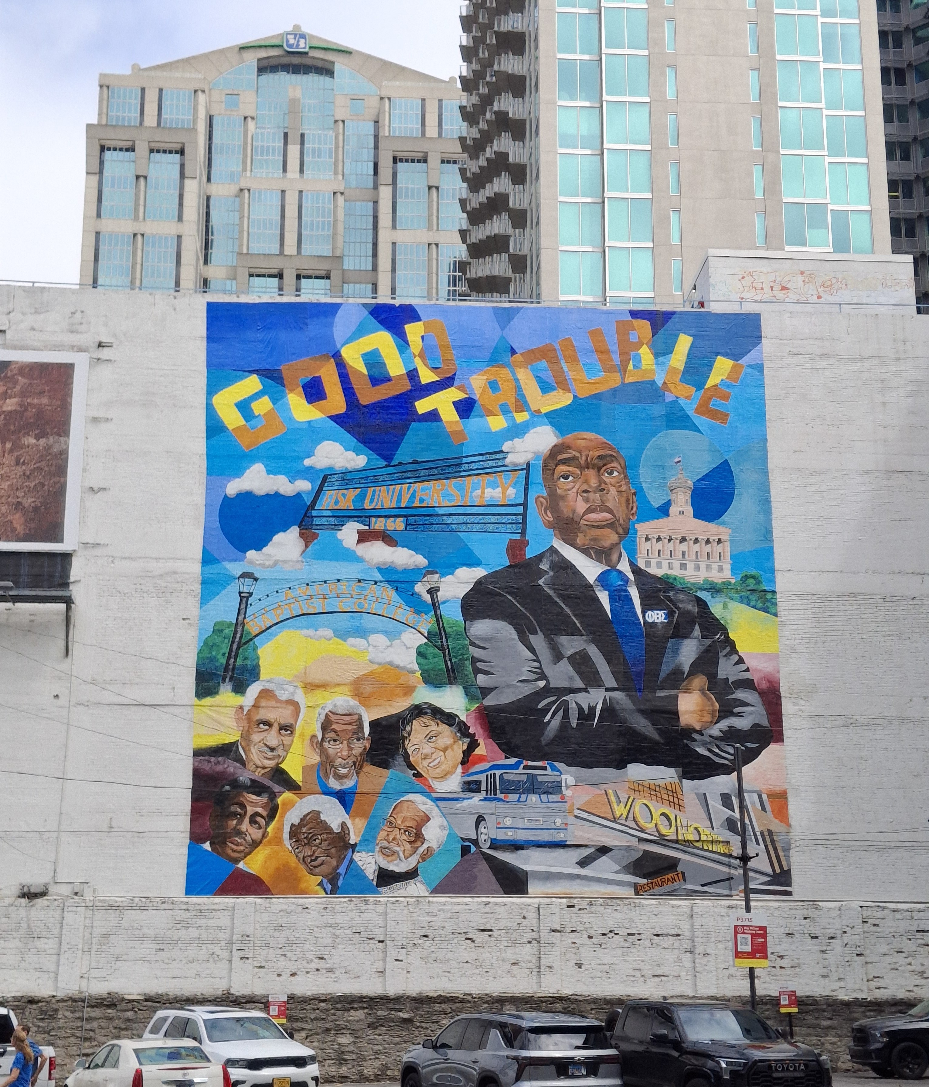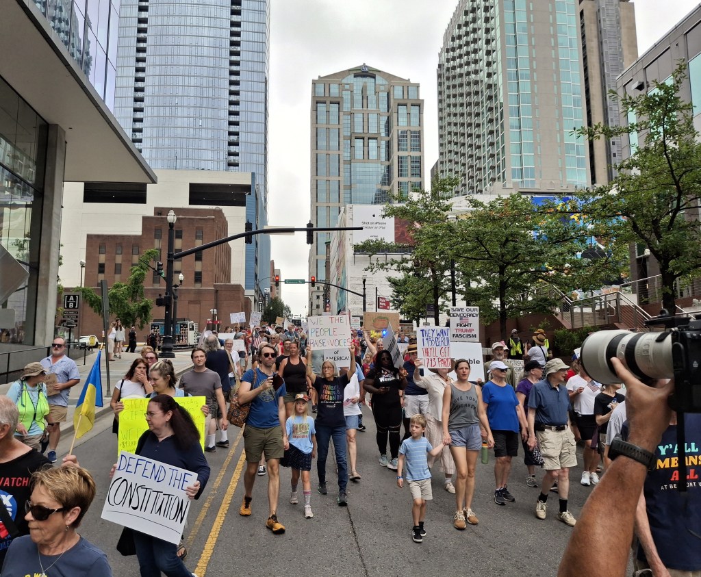 Some snaps from the John Lewis “Good Trouble’ march in Nashville, Saturday, July 19, 2025 A.D.. These went on all over the country, but in Nashville, there is annual celebration, as Lewis had deep roots here, connected to the Civil Rights movement and his time in the city, as he graduated from both Fisk University and the American Baptist Theological seminary and engaged in civil rights advocacy, as part of the Nashville Student Movement and became one of the 13 original Freedom Riders. Before the march, there was a gathering honoring him and other social justice pioneers; a bevy of posters honoring Diane Nash lined the dais; first generation freedom riders were in the audience; scholarships were given to HBCUs and our resolute Tennessee State Representative Justin Jones spoke, pointing out that what he saw in front of him was the real Nashville – interracial, intercultural, intergenerational. And, his words drew us to the present moment and our charge.