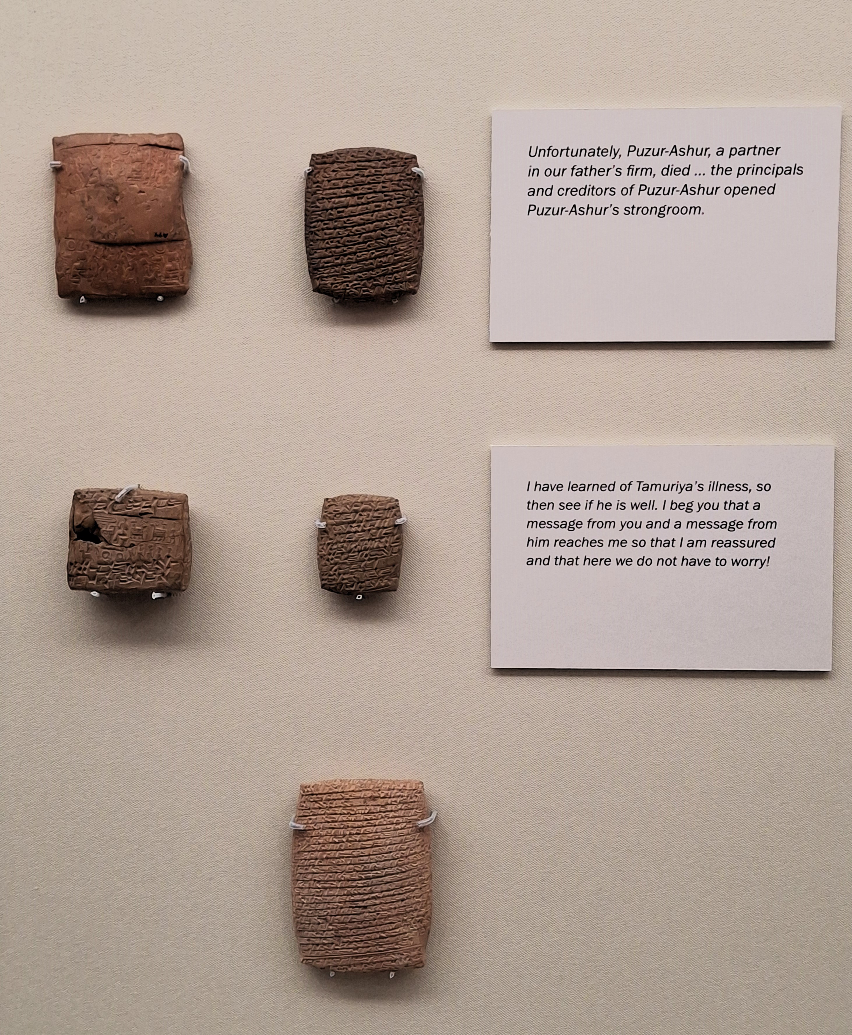 Anyway, it is fascinating to see how the Sumerians lived; they invented writing in 3,300 B.C., one of humanity’s greatest achievements. Something like 15,000 letters have been found to date, people discussing their businesses, life at school, land deeds and lawsuits – or a simple plea asking a friend to write so they would know that person is okay. You know, typical life stuff in day-to-day Mesopotamia. It’s taken scholars 100 years to fully decipher the language written in these tablets. There were interesting pieces in the exhibit on Baghdad and Egypt, as well.